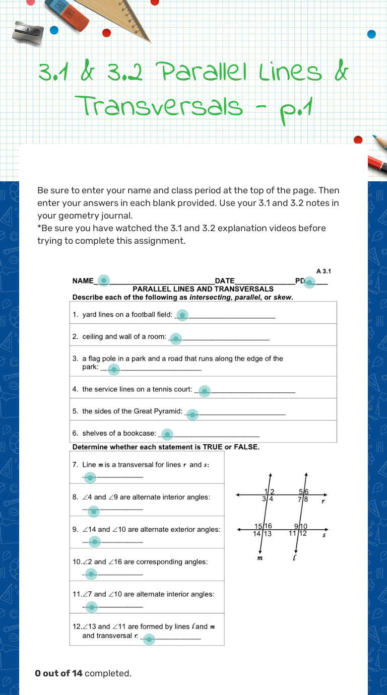 Home » » 3.1 Parallel Lines And Transversals Worksheet Answers - 3 2 Worksheet Pdf Parallel Lines Transversals Worksheet Caleb Thompson Name Date Directions Find The Measure Of The Missing Angles 1 98 2 45 135 45 98 Course Hero :